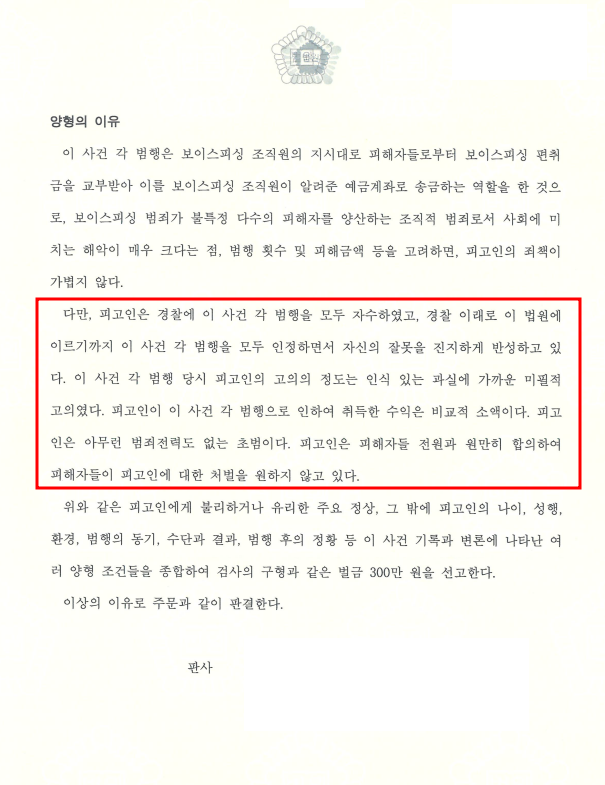법원은 저희 문정이 주장하는 바를 받아드려 벌금 300만원을 선고하였습니다.