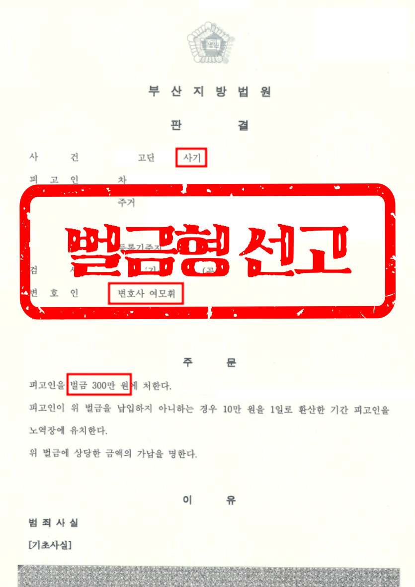 실형을 피하고 벌금형으로 사건을 마무리하여 의뢰인이 매우 만족하였습니다.
