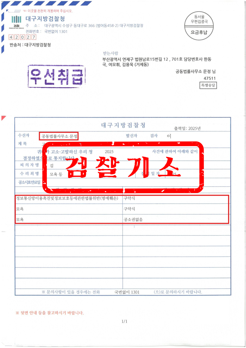 온라인 명예훼손,모욕 고소 검찰기소
