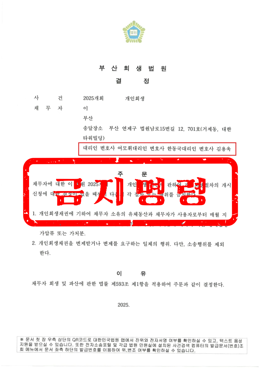 이로써 의뢰인은 채권자들의 압류 위험에서 벗어나, 신용 회복을 위한 첫걸음을 내딛을 수 있게 되었으며, 문정의 조력에 매우 큰 만족감을 표하셨습니다.