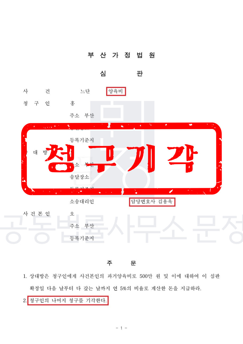 과거 양육비 청구기각 및 감액결정