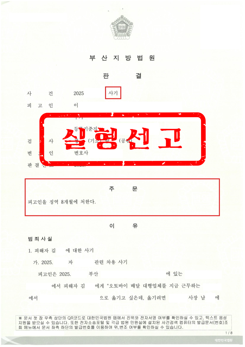 그 결과 수사기관과 법원은 본 사건을 단순한 민사 채권 분쟁이 아니라, 형법상 사기죄에 해당하는 범죄로 판단하였습니다.