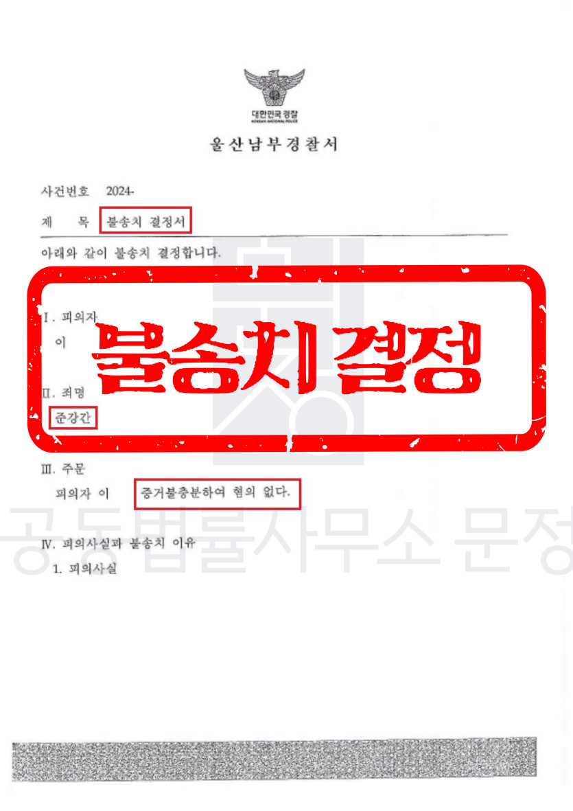 경찰 수사관은 문정의 의견을 대부분 수용하여, 최종적으로 의뢰인에 대하여 불송치 결정을 하였습니다.