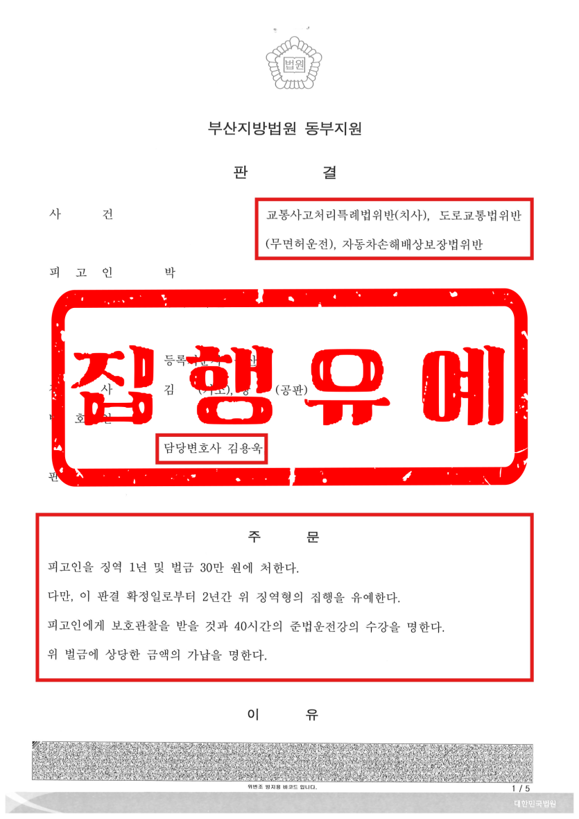 무면허 교통사고 사망사건 집행유예