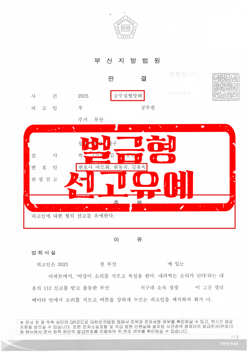 ※ 참고로 공무집행방해 사건의 합의 절차는 실무상 일반 형사사건과 다릅니다.