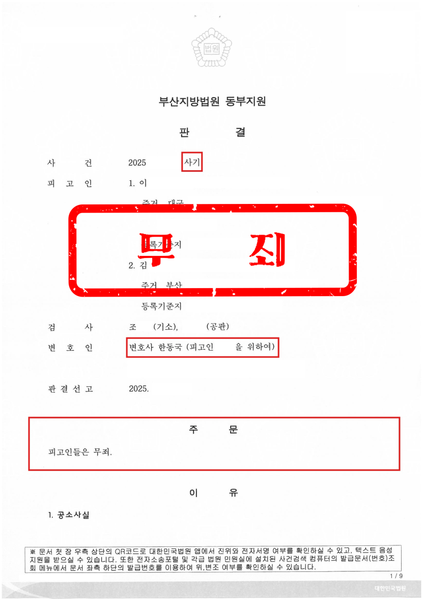 이후 부산형사전문변호사 법무법인 문정법원에 70페이지가 넘는 상세한 변호인의견서를 제출하며, 공소사실에 기재된 범행일시에 범행을 한 사실이 없다는 점, 각 국가별 서비스를 제공할 때 다양한 방법으로 기망했다는 부분을 세분화하여 기망한 사실이 없다며 다투었고, 본 사건은 사업상 실패로 봐야할 것이지, 형사상 사기죄로 평가할 수 없다는 요지로 적극 변론하였습니다.
