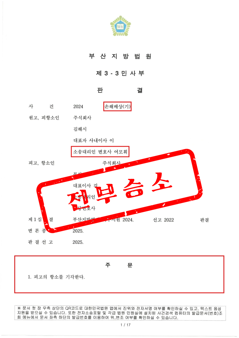 그 결과, 의뢰인의 손해배상 청구는 1심과 동일하게 전부 인용되었고, 장기간 이어졌던 법적 분쟁은 의뢰인의 승소로 종결되었습니다.